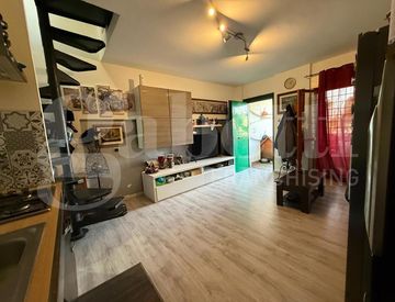 ANZIO - VILLAGGIO GIORNALISTI - Proponiamo in vendita una porzione angolare di villino a schiera di circa 65 mq tra interno ed esterno. La casa disposta su due livelli è composta al piano terra da soggiorno con angolo cottura, al piano superiore a cui si accede da una scala interna a chioccola, troviamo una camera da letto, bagno con doccia e balcone. Si presenta in buono stato manutentivo. Riscaldamento autonomo con condizionatori inverter, boiler...