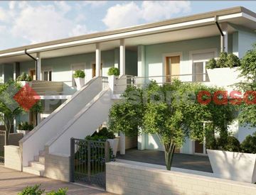 Tor San Lorenzo Lido - consorzio La Sbarra - appartamento in villa al piano primo: soggiorno con a/k, due camere, disimpegno, bagno con doccia, due balconi e posto auto scoperto interno al consorzio. Pannello solare produzione acqua calda da 150 LT e predisposizione pannelli fotovoltaici. Servizio di guardiania h24 tutto l'anno. Gli appartamenti si trovano a 200 mt dal mare e la consegna è prevista a giugno 2026.
