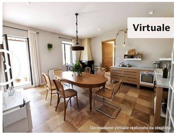 La casa di dispone su un unico livello e sviluppa una superficie complessiva di 129 mq. calpestabili ed è composta da un ampio ingresso con locale guardaroba, soggiorno con camino, angolo cucina e locale dispensa, balcone (con ripostiglio), stanza studio, 2 camere da letto di cui una con bagno, salone, ampio bagno con finestra.