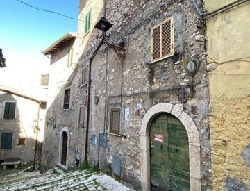 CARPINETO ROMANO in Via Castello Casa su 3 piani composta da 2 vani cantina al piano seminterrato; cucina, camera, bagno e balcone al piano primo; 2 camere, bagno e balcone al piano secondo; 2 camere al piano terzo.