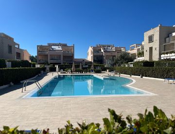 appartamento unico livello in comprensorio con piscina situato al piano terra con giardino, extra rifinito.