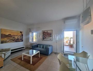 L' appartamento si presenta luminoso e accogliente, con un ampio terrazzo di ca 17 mq e con la realizzazione di una scala esterna si può accedere a un lastrico solare di 89 mq che consente di godere della vista panoramica sui tetti della città. Internamente si compone di ingresso, soggiorno, angolo cottura, camera matrimoniale, cameretta, ripostiglio e bagno.