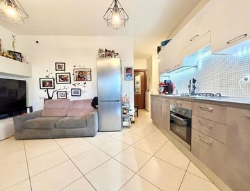 L'abitazione è composta da un'accogliente zona living con cucina a vista, una camera da letto matrimoniale di dimensioni notevoli, una seconda stanza da letto, bagno finestrato dotato di cabina doccia ed un funzionale disimpegno a dividere gli ambienti.