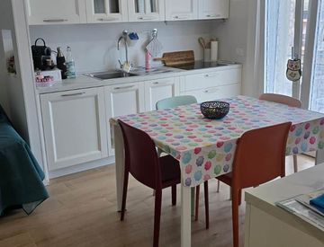 L’appartamento, di circa 75mq, arredato nuovo, e’ composto da: sala con cucina a vista e uscita sul balcone, 2 camere, di cui una matrimoniale con balcone e una singola, e infine bagno finestrato con doccia.