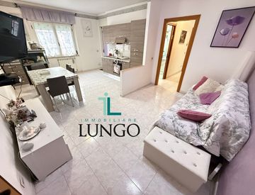 L'immobile è composto da salone con angolo cottura, disimpegno, due camere, due bagni e balcone a livello.