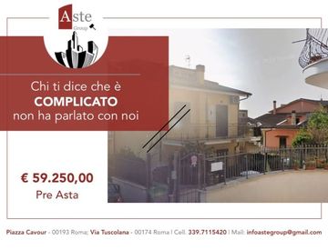Quota pari a 1/1 del diritto di proprietà su appartamento sito in Marcellina (RM), Via dei Gigli n. 6, dislocato su due livelli (piano terra e interrato) composto da angolo cottura soggiorno, bagno, camera da letto e cantina al piano interrato per complessivi mq. 60 di superficie netta, oltre a mq. 60 di corte esclusiva di pertinenza.