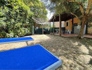 L'immobile al piano terra dispone di un salotto con cucina ed un bagno, mentre il piano sottostante collegato da scala interna ospita una camera con bagno.