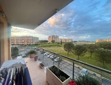 Pomezia, precisamente a Santa Palomba, appartamento, posto al terzo piano con ascensore, composto da luminoso salone con angolo cottura e climatizzatore, grande camera matrimoniale entrambe con uscita al terrazzo e servizio finestrato con vasca. Completa la proprietà un posto auto scoperto, una cantina e un box.
