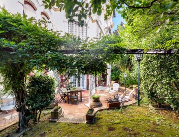The private 400 square meter garden is a green corner of rare beauty, perfect for outdoor relaxation, recreational activities, or al fresco dining, creating a private and peaceful atmosphere, far from the chaos of the city.