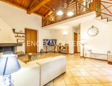 composto, al piano terra, da un ampio ed accogliente salone con camino, illuminato da una porta-finestra che affaccia sul giardino privato, una cucina abitabile, con soppalco in legno praticabile, due camere da letto ed un bagno, sul piano soppalcato, troviamo una terza camera da letto, uno spazioso guardaroba, ed un secondo servizio.
