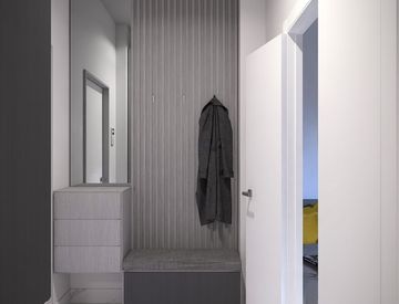 Le ampie finestre affacciate sul balcone di 15 mq, amplificano la luce naturale e rendono gli interni gli interni ariosi e accoglienti. Le finiture e i pavimenti in grès porcellanato effetto marmo donano continuità e armonia visiva agli ambienti.
