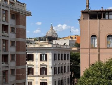 La residenza si apre su un ampio e luminoso salone con doppio affaccio, impreziosito da una vista esclusiva sulla Cupola di San Pietro. La cucina, elegantemente attrezzata, è separata e abitabile. La zona notte comprende tre spaziose camere matrimoniali e due sofisticati bagni, entrambi dotati di finestre e finiture di pregio.