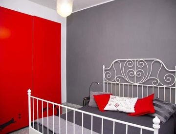 Camera da letto: letto matrimoniale, armadio, scrivania, sedia, comodini, abat-jour, tende e lampadario, n attaccapanni. Brandina per eventuali ospiti.