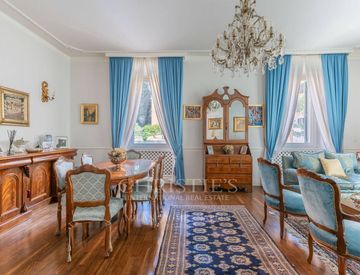 Il cuore della casa è rappresentato da un ampio salone doppio, incorniciato da grandi vetrate che inondano l’ambiente di luce naturale con un arredamento, curato nei minimi dettagli, creando un'atmosfera raffinata e accogliente.