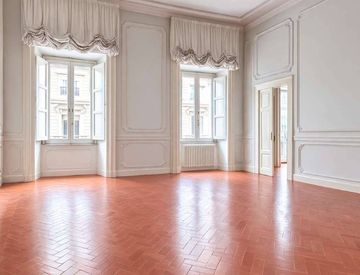 Via Nazionale, Umbertine building with elevator, prestigious, unfurnished property of 232 square meters, comprising a large entrance hall, spacious hallway, double living room, two bedrooms, two bathrooms, fully equipped kitchen, and a storage room/laundry room. The master bedroom has two spacious walk-in closets. High ceilings. Air conditioning. Independent heating. Security door. 3+2 contract. Only referenced and guaranteed tenants.