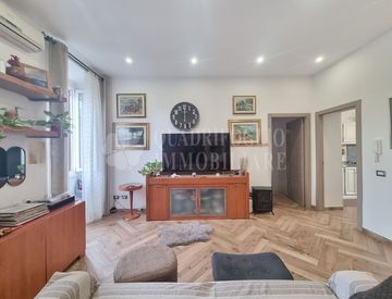 L'appartamento internamente è composto da soggiorno a vista, cucina abitabile, camera matrimoniale, camera, servizio e corridoio con soppalco. L'immobile internamente è stato completamente ristrutturato ed è dotato di porta blindata, infissi in doppi vetri, persiane in alluminio, zanzariere, condizionatori ed impianto di riscaldamento centralizzato.
