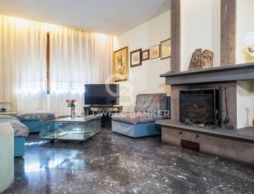 Il primo piano ospita un ampio e accogliente ingresso che conduce ad un luminoso e spazioso salone di rappresentanza con camino, fulcro del living, che aggiunge un tocco di calore e charme, con pavimentazione in marmo, elemento di pregio che conferisce eleganza all'ambiente.