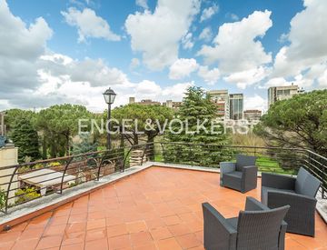 Una scala conduce alla zona notte, posta al primo piano, composta da un'ampia camera padronale con accesso ad un'altra terrazza di 50 mq circa con vista sul parco, altre due camere da letto e due bagni entrambi con finestra.