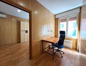 L’immobile posizionato al piano terra con ingresso indipendente risulta attualmente composto da: disimpegno d’ingresso, piccola sala studio, camera con angolo cottura, bagno e ripostiglio: ogni vano ha la sua finestra. Inoltre all’ingresso un’elegante boiserie in legno nasconde un armadio a muro.