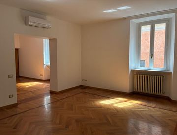 Nelle vicinanze di Largo Argentina, a Via Monterone, in un grazioso edificio dotato di ascensore, elegante e spazioso appartamento posto al terzo e al quarto piano. E’ composto da un grande salotto doppio, 3 camere da letto, 2 bagni, cucina arredata, lavanderia, bagno ospiti. Da una comoda scala si accede al quarto piano, tutto mansardato, con un bel salotto, una grande camera da letto con bagno, soffitta ed enormi ripostigli. L’appartamento è dotato...