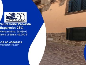 Riferimento: 4490351 Vicolo ottuso n. 2, 01038 Soriano nel Cimino Viterbo Diritto di proprietà abitazione Soriano nel Cimino Vic. Ottuso n. 2 p. terra, fg. 44, part. 437, sub 1, cat. A/4, cl 2, composto: cucina/pranzo, bagno, camera da letto e balcone. Superficie mq. 44,00, balcone mq 5,00. Pavimenti monocottura, infissi interni in legno esterni in alluminio doppio vetro e persiane. Caldaia metano, radiatori alluminio e camino a legna. L’immobile...