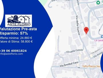 Riferimento: 4478545 Via del Mattatoio n. 7. Tolfa Lotto: 2 Lotto 2: Appartamento a piano terra con accesso indipendente da Via del Mattatoio n. 7. L'abitazione partedi un fabbricato di tre piani composto da sei unità immobiliari residenziali, è distinta in catasto al foglio n. 23, p. lla 257, sub 501, categ. A/4, classe 3, vani 2,5, mq 49, rendita € 142,03. Stato di occupazione: Libero. Data di vendita: 15/01/2026 11:00 Offerta minima: € 24.860,...
