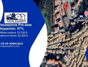 Riferimento: 4478549 Via del Mattatoio n. 13. , 00059 TOLFA Lotto: 5 Lotto 5: Appartamento a piano terra con accesso indipendente da Via del Mattatoio n. 13. L'abitazione parte di un fabbricato di tre piani composto da nove unità immobiliari residenziali, è distinta in catasto al foglio n. 23, p. lla 255, sub 502, categ. A/2, classe 1, vani 2,5, mq 45, rendita € 200,13. Stato di occupazione: Libero. Data di vendita: 15/01/2026 11:00 Offerta minima:...