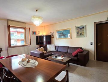 L'immobile e' composto da una ampia sala luminosa con accesso diretto al balcone principale, cucina abitabile dotata di un secondo balcone e di un pratico camino, due camere da letto. una cameretta e doppi servizi.