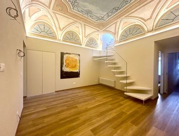 Internamente impreziosito da soffitti a volta affrescati composto da ingresso su disimpegno, sala da pranzo, salotto, due camere da letto e doppi servizi.