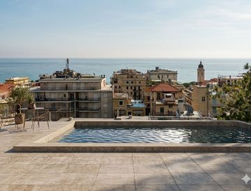 In posizione dominante e riservata, all’interno di una prestigiosa villa di nuova costruzione, proponiamo un raffinato alloggio al piano terra che coniuga comfort, privacy e una straordinaria vista sul mare e sul golfo di Alassio.