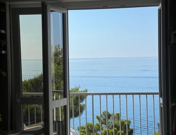 Ampio terrazzo e balcone con vista panoramica sul mare, ideali per godersi momenti di relax all'aria aperta.