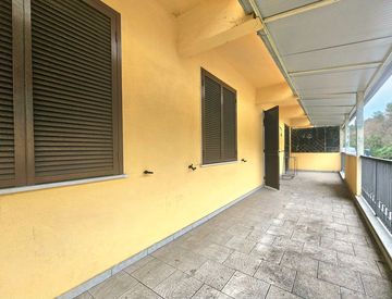 Si superano i 3 gradini e si accede alla grandissima terrazza coperta (tutta questa porzione, con la nuova legge, puo' essere chiusa con vetrate amovibili, senza chiedere nulla a nessuno)