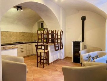 BARDINETO: In centro paese trilocale su tre livelli con ingresso indipendente per 2 unità immobiliari distinte e divise come proprietà. L'immobile risulta composto a pian terreno da un ampio soggiorno con cucina a vista, bagno finestrato con box doccia, scala d'accesso comune al piano primo composto da un disimpegno condiviso con altra proprietà da cui si accede ad un piccolo disimpegno, una camera matrimoniale dotata di balcone, secondo bagno, scala...