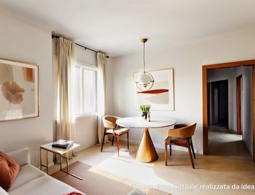 L'immobile è posto al secondo piano di una piccola palazzina, situata in posizione defilata dalla via principale ed è così composto: ingresso aperto sul luminoso soggiorno, una spaziosa cucina con zona pranzo, disimpegno che collega la zona notte, formata da tre camere da letto e due bagni.