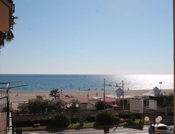Bilocale vista mare composto da: ingresso, camera matrimoniale con un letto singolo, soggiorno con divano letto singolo e monoblocco cucina a vista con piano cottura induzione, bagno finestrato con doccia, balcone esposto ad ovest con vista mare laterale dotato di zanzariere, lavatrice, tv/LCD, frigo doppia porta.