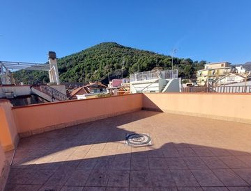 La casa dispone di una grande camera matrimoniale, una camera cieca e un bagno al secondo piano. Al terzo piano, un ampio locale utilizzato come sala con cucina si apre su una spettacolare terrazza di circa 40 mq, perfetta per godersi la vista panoramica. Un secondo bagno completa questa area.