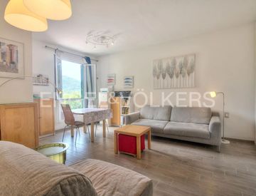 L’ingresso conduce a una luminosa zona giorno affacciata sul verde, dotata di cucina e bagno, camera da letto e secondo bagno. Gli spazi sono arredati con divani letto, così da poter essere facilmente utilizzati anche come zona notte. Ogni ambiente è valorizzato da una piacevole luminosità naturale e da un’atmosfera riservata e tranquilla.
