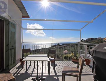 Gli ambienti sono ampi e luminosi oltre che ben disposti; la zona giorno, ben arredata e dotata di due portafinestre e di stufa a pellet, affaccia direttamente sull'ampio terrazzo da cui si ha vista aperta sul mare.