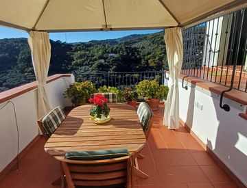La terrazza è la caratteristica principale di questa opportunità che dona una vista panoramica su tutta la vallata, sul borgo medievale di Diano Castello e sul mare.