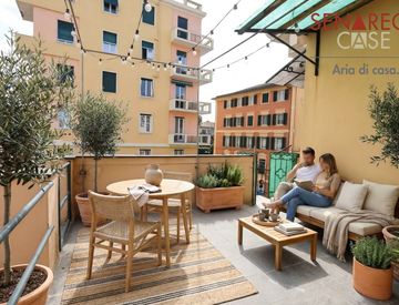 VIA GUGLIELMO OBERDAN, unità immobiliare da ristrutturare a Nervi, centralissima e quindi comodissima ai servizi ed ai collegamenti, costituita da un attico con accesso indipendente e prezioso piacevole terrazzo al piano di circa dieci metri quadrati, dotato di esposizione luminosa e soleggiata, attualmente composto da 8 vani distribuiti su una superficie di circa centotre metri quadrati, suddiviso in ingresso, veranda adibita a zona giorno, cucina...
