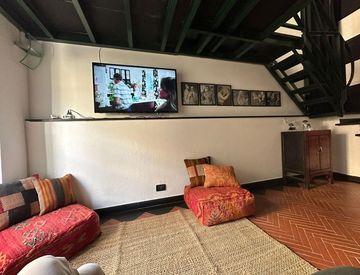 L'appartamento è posto su tre livelli, abbiamo il piano ammezzato con bagno e cucina grande completa di elettrodomestici, al secondo piano il salone openspace con balconcino e al terzo piano la camera da letto matrimoniale con soppalco e armadi a muro.