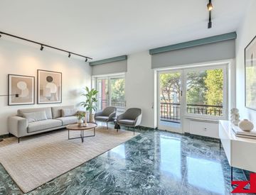 L’ingresso conduce a un soggiorno doppio molto luminoso, con accesso a una grande balconata vivibile esposta a est, ideale per momenti di relax. La cucina è abitabile e dotata di balcone di servizio con esposizione a ovest. La zona notte comprende due camere matrimoniali, una camera singola e due bagni finestrati.