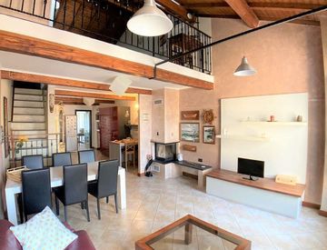 L'appartamento è disposto su due livelli ed è stato rinnovato e arredato con gusto, con grande attenzione ai dettagli. Le travi in legno a vista, il soppalco e gli elementi su misura rendono l'abitazione accogliente e particolare. Gli spazi sono stati studiati con cura per sfruttare ogni metro in modo razionale.