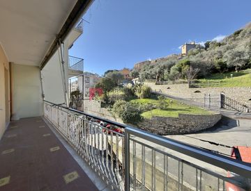 Il secondo balcone (8 x 1,5 m) è accessibile sia dalla camera da letto, una spaziosa matrimoniale, sia dalla cucina, suddivisa in angolo cottura e tinello.