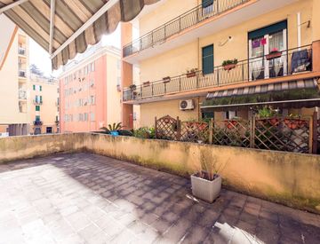 GENOVA SAN FRUTTUOSO - VIA ALDO MANUZIO N. 15 proponiamo in vendita ampio 6 vani di ben 96 mq catastali collocati nella parte alta della Via; L'immobile, posto al piano terra di uno stabile dotato di ascensore, è così composto: ingresso con posta blindata, cucina abitabile, soggiorno, due camere da letto, bagno, dispensina, balcone e terrazzo al piano. Avete capito bene. La casa, che espone come un secondo piano, è dotata di un rarissimo terrazzo...