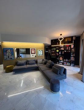 L'appartamento si apre su una zona living dal design contemporaneo, con soggiorno accogliente e area pranzo, che gli donano un'atmosfera elegante e raffinata.