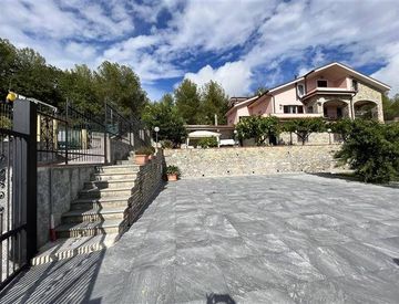Imperia Oneglia Sant'Agata, appartamento con ingresso indipendente senza barriere architettoniche, in perfette condizioni in contesto di tre unita' abitative costituito di ingresso soggiorno, cucina abitabile, due camere, studio, bagno, terrazza circostante e giardino privato, vista panoramica fino al mare. Due posti auto riscaldamento autonomo.