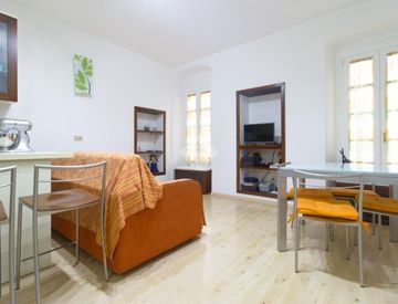 L'appartamento è composto da due locali principali: una pratica zona giorno con angolo di cottura e una camera da letto. Il bagno, finestrato e ben rifinito, è dotato di un ampio box doccia. Un comodo terrazzo completa l'offerta, fornendo spazi esterni privati dove rilassarsi e godere dell'atmosfera del centro cittadino.