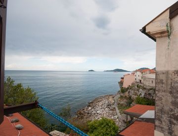 TELLARO. Appartamento con bellissimo scorcio di vista mare a pochi passi dalla piazza e dalla marina. L'immobile ha ingresso indipendente e si articola su tre livelli. Al piano terra, ingresso, cucina e bagno; al piano primo due camere da letto; al piano secondo, soggiorno e camera da letto.