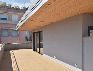 L'attico è composto da ingresso nella grande zona living con terrazza esposta ad ovest. Dal disimpegno si passa alla zona notte con due camere che accedono ad un altra terrazza esposta ad est e bagno finestrato con doccia.